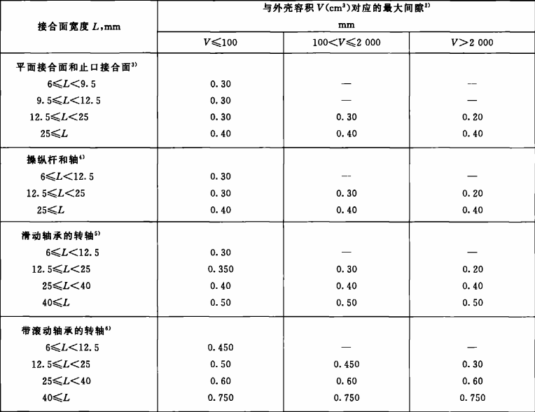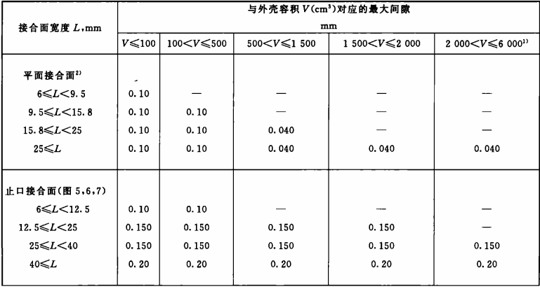 無(wú)論是長(zhǎng)期關(guān)閉或是經(jīng)常打開(kāi)的外殼,其所有接合面均應(yīng)符合表 1~表 5 及下列要求。