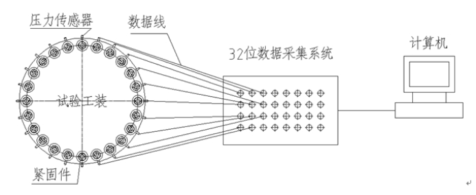法蘭密封綜合性能測試平臺,用于分析法蘭螺栓彈性交互作用在預(yù)緊施過程中的作用規(guī)律,主要包括法蘭組件(24個螺栓)、螺栓力測量傳感器、數(shù)據(jù)采集系統(tǒng)和安裝配件等。