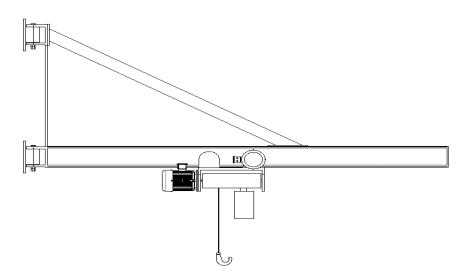 重錘自動吊裝裝置,采用懸臂吊結(jié)構(gòu)。懸臂一端固定在桁架大梁上,可繞支點(diǎn)轉(zhuǎn)動,轉(zhuǎn)動角度可根據(jù)限位機(jī)構(gòu)調(diào)整,大梁采用20#工字鋼,保證剛度和強(qiáng)度,懸臂上方增加加強(qiáng)鋼梁,保證使用的穩(wěn)定性。吊裝裝置使用電動環(huán)鏈葫蘆,可上下左右運(yùn)動,運(yùn)行平穩(wěn),性能可靠,且噪音較低。大梁遠(yuǎn)端設(shè)電氣限位機(jī)構(gòu),增加機(jī)械擋塊,防止電動環(huán)鏈葫蘆滑落。結(jié)構(gòu)示意圖見下圖。