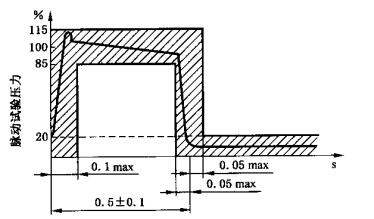 5 調(diào)節(jié)油液供給,以滿足符合圖7所示的壓力一時(shí)間曲線的釋放特性曲線。壓力測(cè)量點(diǎn)上部位置與下部位置之間的壓力差應(yīng)等于20.3中所獲得的試驗(yàn)壓力。一次流體釋放等于一次循環(huán)。在試驗(yàn)報(bào)告中包括現(xiàn)行的壓力一時(shí)間曲線附件。